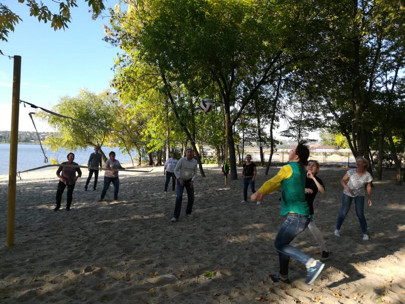 В этот день природа порадовала нас замечательной солнечной погодой. С удовольствием и азартом прошел матч по пляжному волейболу, конкурс танцев и спортивная эстафета, веселые подвижные игры.