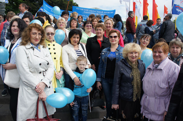 Педагогические коллективы Ленинской районной Профсоюзной организации приняли участие в праздничном шествии и митинге, организованном Федерацией Профсоюза Ростовской области.